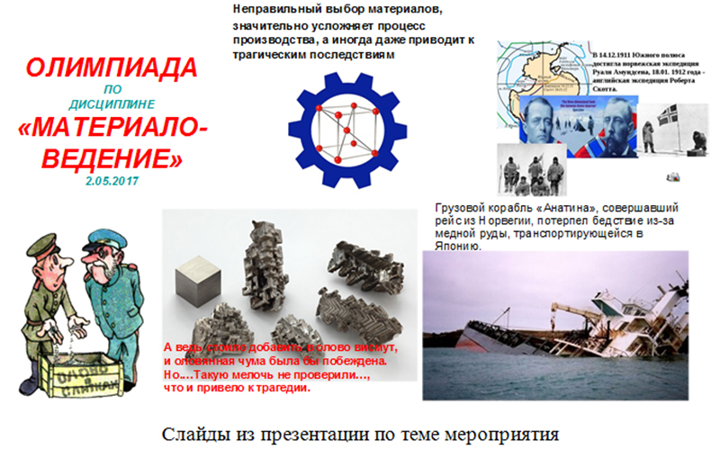 Преподаватель подчеркнул, что для того чтобы стать квалифицированным специалистом, выпускники должны хорошо разбираться в машиностроительных материалах и умело применять их на практике. Были приведёны примеры из истории, в которых халатное отношение к материалам привели к гибели людей.